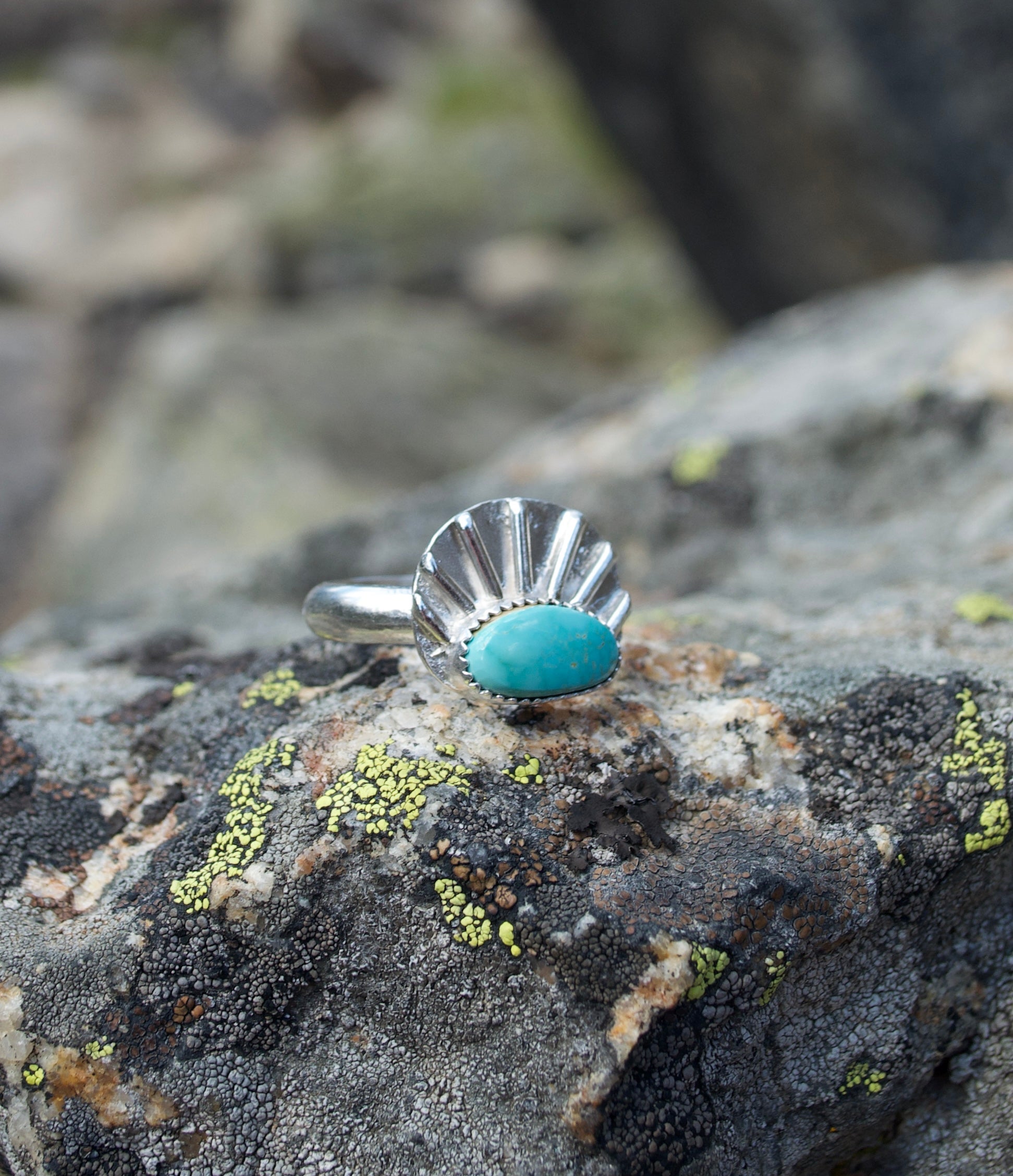 Turquoise set along silver rays