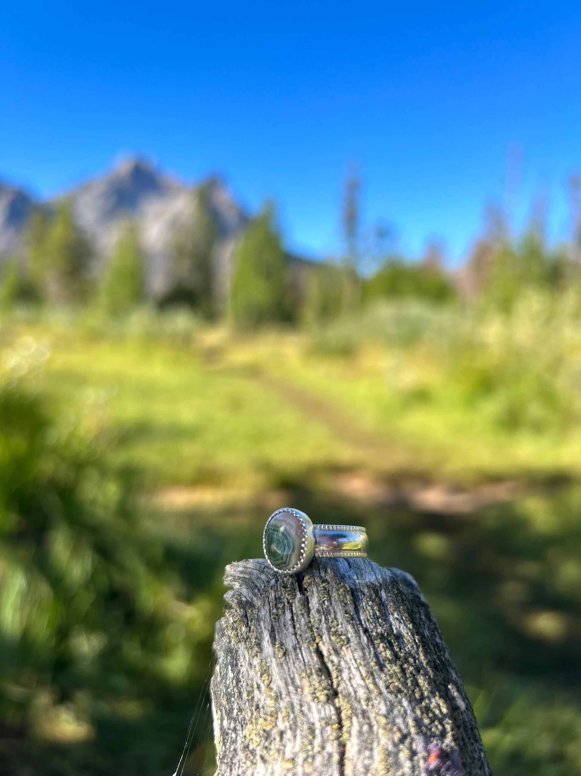 A pretty ocean jasper ring on a thick band! Super cute as a pinky ring :)